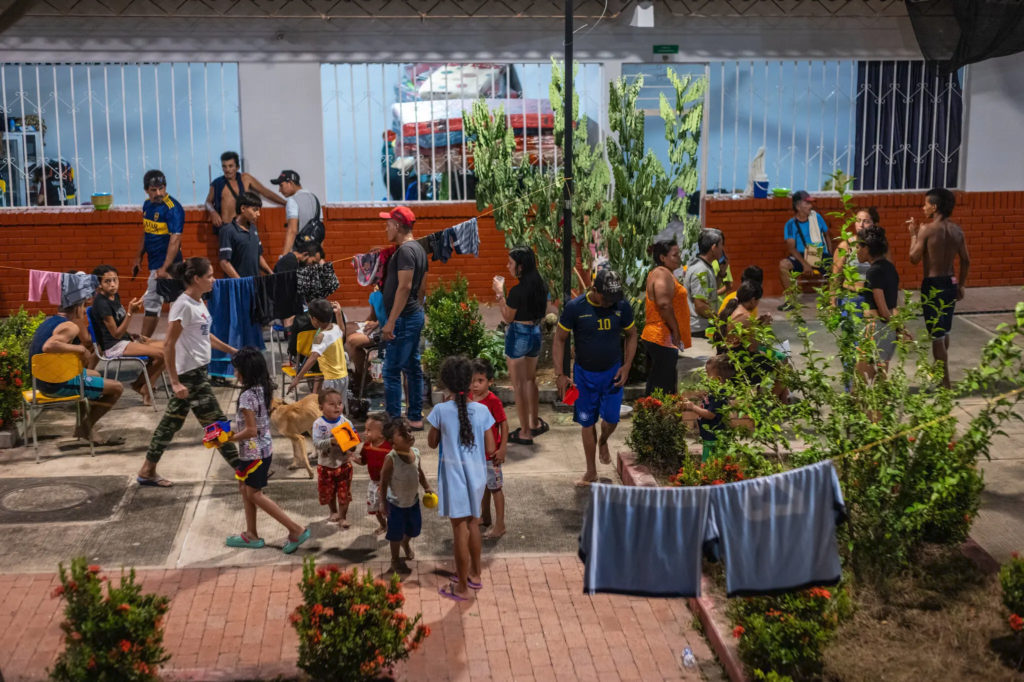 Familias desplazadas en un refugio en Tibú, en enero. La región circundante ha sido una de las varias zonas de Colombia que han sufrido nuevos conflictos.Credit…Federico Rios para The New York Times