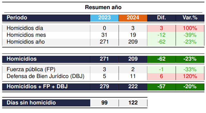 Durante el periodo comprendido entre 2023 y 2024 se han observado significativas variaciones en los índices de homicidios. Comparando ambos años: